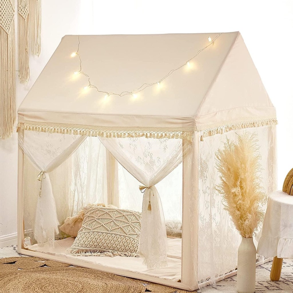 Simply gorgeous ✨✨✨ Includes beautiful lace tent cover, padded non-slip mat, star lights, star garland, tassel straps, and poles to build the tent. Dimensions:52’’L*35’’W*52’’H. Enter HNYUTQTO at checkout to enjoy 40% savings. Must snag! #ad