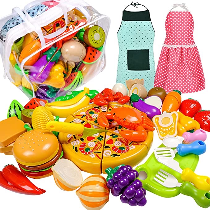 Grab these group fave 60 piece pretend play kitchen toys including 2 aprons! I love that it comes in a bag so you can pack it up later! Use code 4053YIPR at checkout for 40% off!!#ad