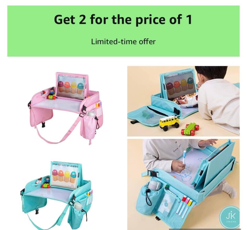 π₯π₯Itβs a BUY 1 GET 1 FREE D EAL!!! Airplane Travel, road trip, can be used in stroller too!! Versatile JiniKids Travel tray – Dry Erase Board & Lap play tray – Car seat desk – Car Travel Activity Setup – Airplane traveling tray – Snack and play tray – iPad & Tablet Holder! Perfect if you have 2 kids or gift one!! #ad