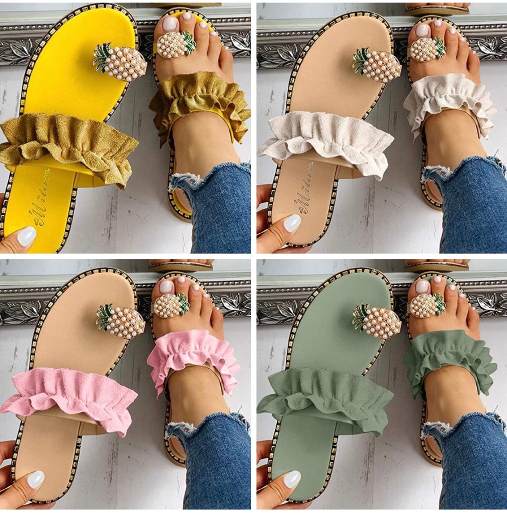 🍍 These sandals are so so cute! 💜🍍I love all of the details! Use 2K5VCBZM to snag a pair for 16.99 (reg. 33.98)! More color options available. Which one did you grab?! #ad