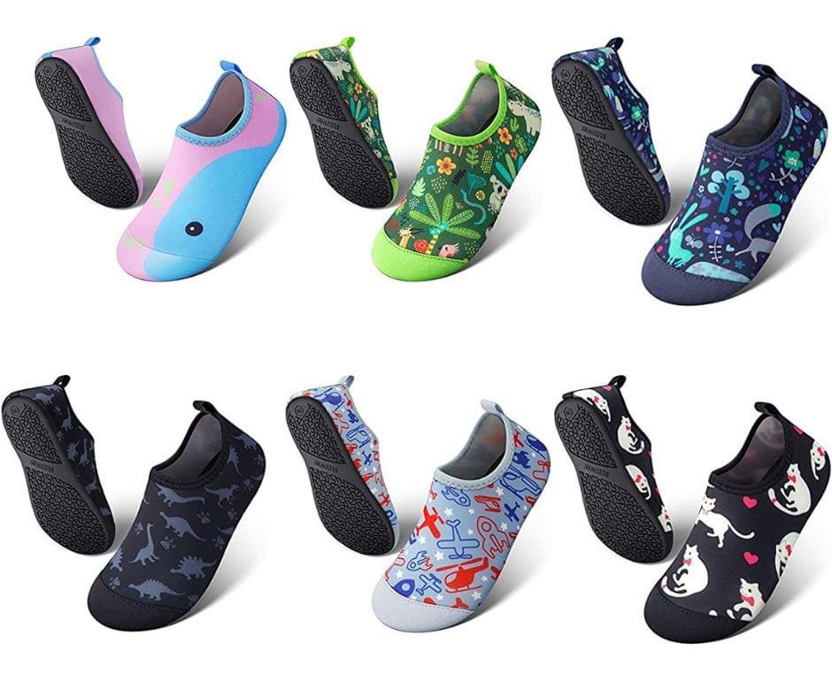 Water shoes are a must at our house! 💦 Between scratchy surfaces around pools or wanting to explore river beds, they really come in handy! Toddler to big kid slzing.