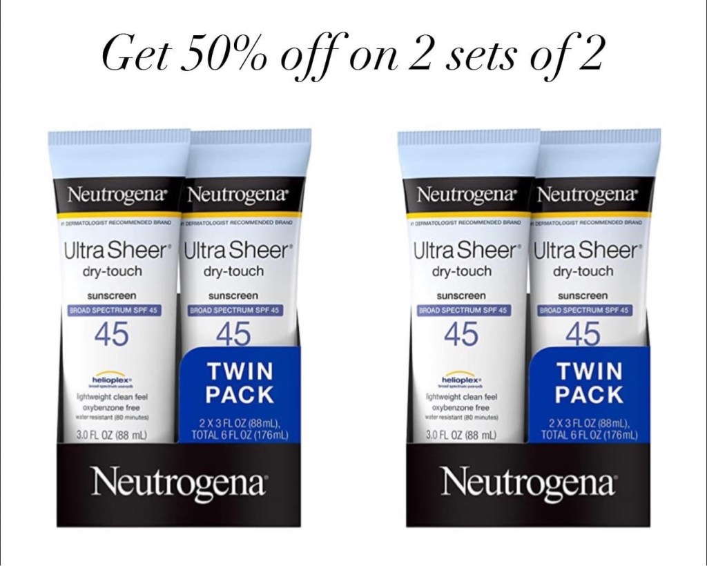 Get out of here!! Get 50% off this Neutrogena Ultra Sheer SPF 45 sunscreen! Just add 2 sets of 2 to the cart and one will be half off at checkout! #ad !ink in comments