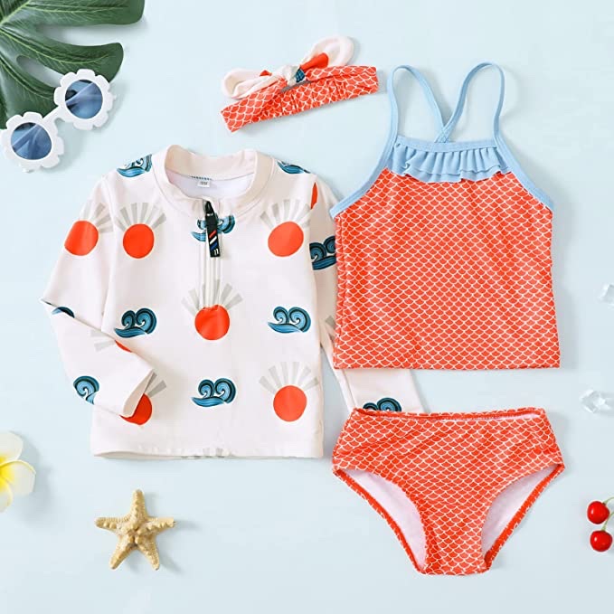 Save 30% on a 4 piece toddler swimsuit with a rash guard and a headband when you use Raining Deals link below! #ad