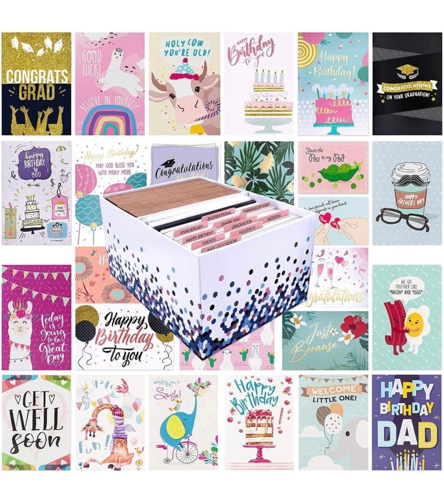 100 occasion cards for just .22 a card! 🥳🎊 That’s even WAY cheaper than the Dollar Store!!! Plus it comes with this nice organized box! Be sure to say if you get one. #ad