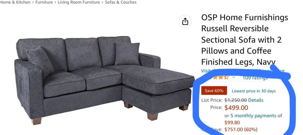 No kidding 😯😱😯Highly Rated! OSP Home Furnishings Russell Reversible Sectional Sofa is 60% off down to 499 (reg 1250)! #ad tell us if you score.