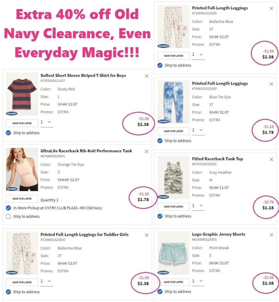G L I T C H🔥🔥🔥 Take an extra 40% off Old Navy clearance when you use c0de EXTRA at checkout! Plus, it’s not supposed to be but it’s working on Everyday Magic items, which makes for some incredible prices – so much for under 3!!! The Everyday Magic is usually excluded, so this could end at any time. Please LMK if it works for you too! #ad