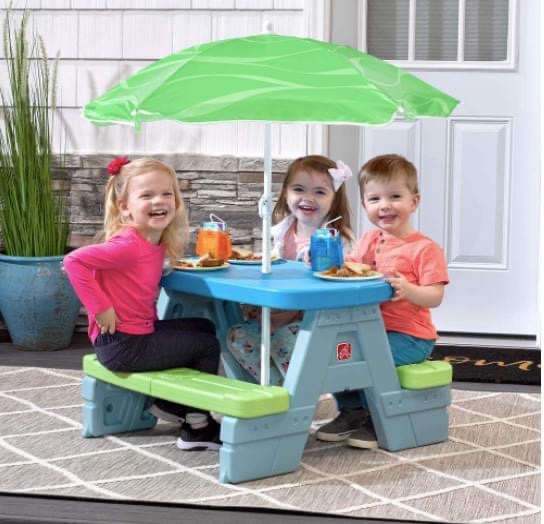 ☀️☔️ The Step2 Sun & Shade Umbrella Kids Picnic Table is down to 54.73 (reg 85)!! ad: Perfect for the yard or deck!