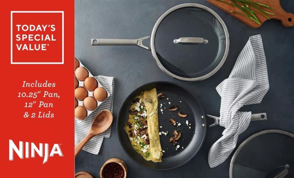 Goooo!!! 😯Todays SpeciaI over at QVC is on the Ninja Foodi NeverStick Premium 10.25″ & 12″ Fry Pans w/Lids!!! Today you can get both pans and lids for 69.98 + if you use a new email address and c0de OFFER you’ll get another 15 off making these 54.98 (reg 110)!!! #Ad NeverStick ensures that the durable, textured coating enables excellent food release. So no more scrubbing sticky messes — everything from melted cheese to gooey caramel sauce comes off quickly and easily! Please say if you grab a set! L!nk in comments