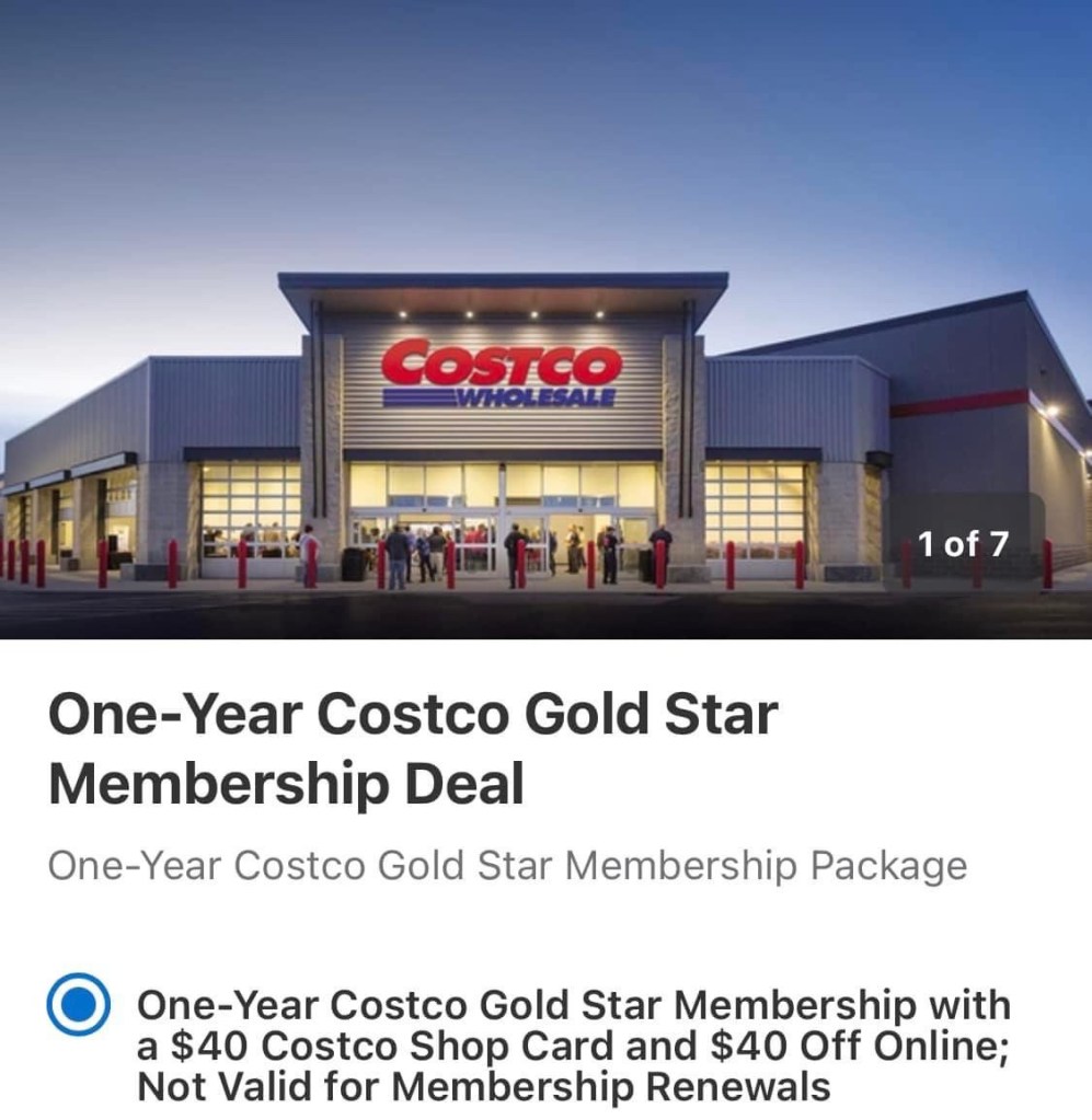 F R E E 🔥🔥🔥 Amazing Groupon D EAL!!! If you’ve been wanting a COSTCO Membership (can’t live without) – here’s the time!!!! Get One-Year Costco GOLD Star Membership Deal – And get a 💲40 Costco Shop Card and 💲40 Off Online for 💲60!! Basically F REE!