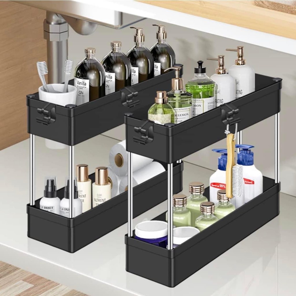 💥💥 These slim under-sink organizers are perfect for narrow spaces! Just 5” wide with 4 hooks for extra storage. You get a pack of TWO in a flexible 2-tier design that can be assembled in any height you choose. ▶️▶️ EnterOEODGYIH to save 50% at checkout! Tell us if you get one. #ad l!nk in comments
