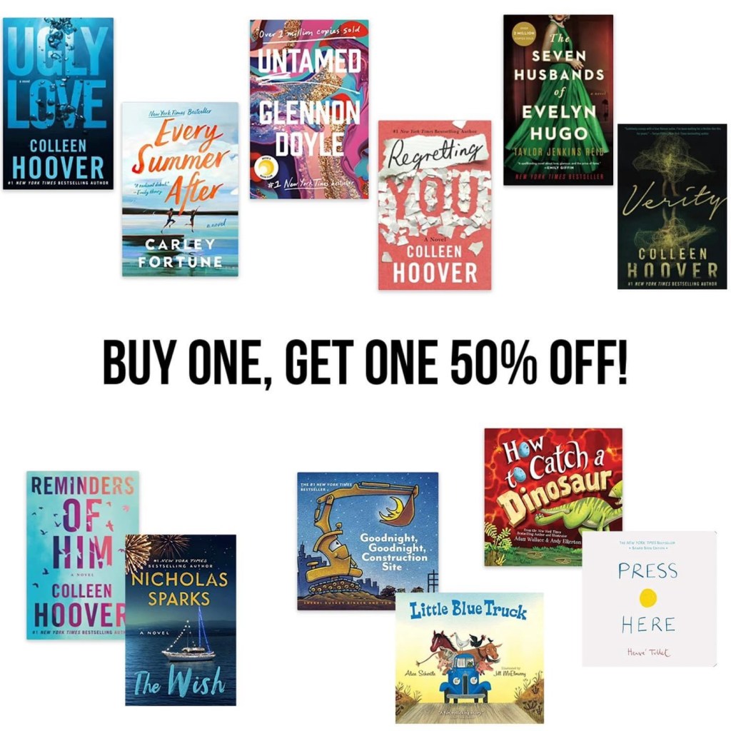 Buy 1, Get 1 50% off!! We LOVE Colleen Hoover and many of her best selling books are included in this promo! Add two qualifying books to your cart and score one for 50% off at checkout! No promo needed. #ad l!nk in comments