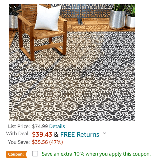 Nicole Miller New York Patio Country Danica Transitional Geometric Indoor/Outdoor Area Rug, Black/Grey, 5’2″x7’2 – get it for only 35 (reg 75)!!! Reminder, d e a l s can end anytime so checkout as you go! Tell us if you get one. #ad