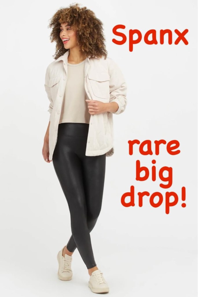 Rare BIG drop on the best-loved Spanx faux leather leggings!! π₯ Plus, petite, and tall options! My friend who is OBSESSED with hers says to go up a size FOR SURE in these – she rocks them with long sweaters and boots in the fall and winter! Tell us if you get a pair!!! #ad l!nk in comments