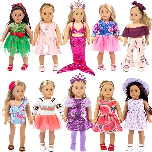 50% savings on this FANTASTIC set of 10 Outfits for 18″ Dolls!! My daughter would go crazy over that mermaid!! Drops by half with Raining Deals link below! #ad