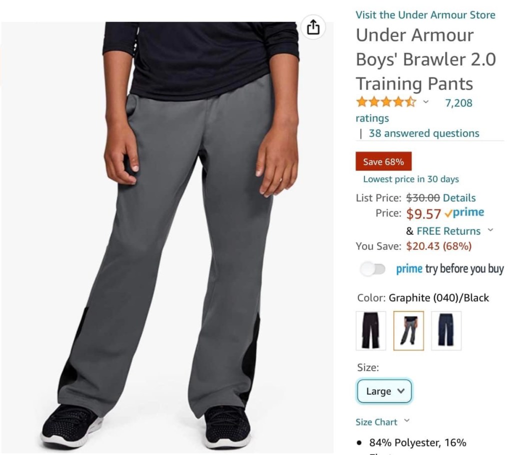 HURRY!! Under Armour boys brawler pants 9.57 as of post time!! Ordered ✅ ✅✅. These won’t last. tell us if you get one. #ad l!nk in comments