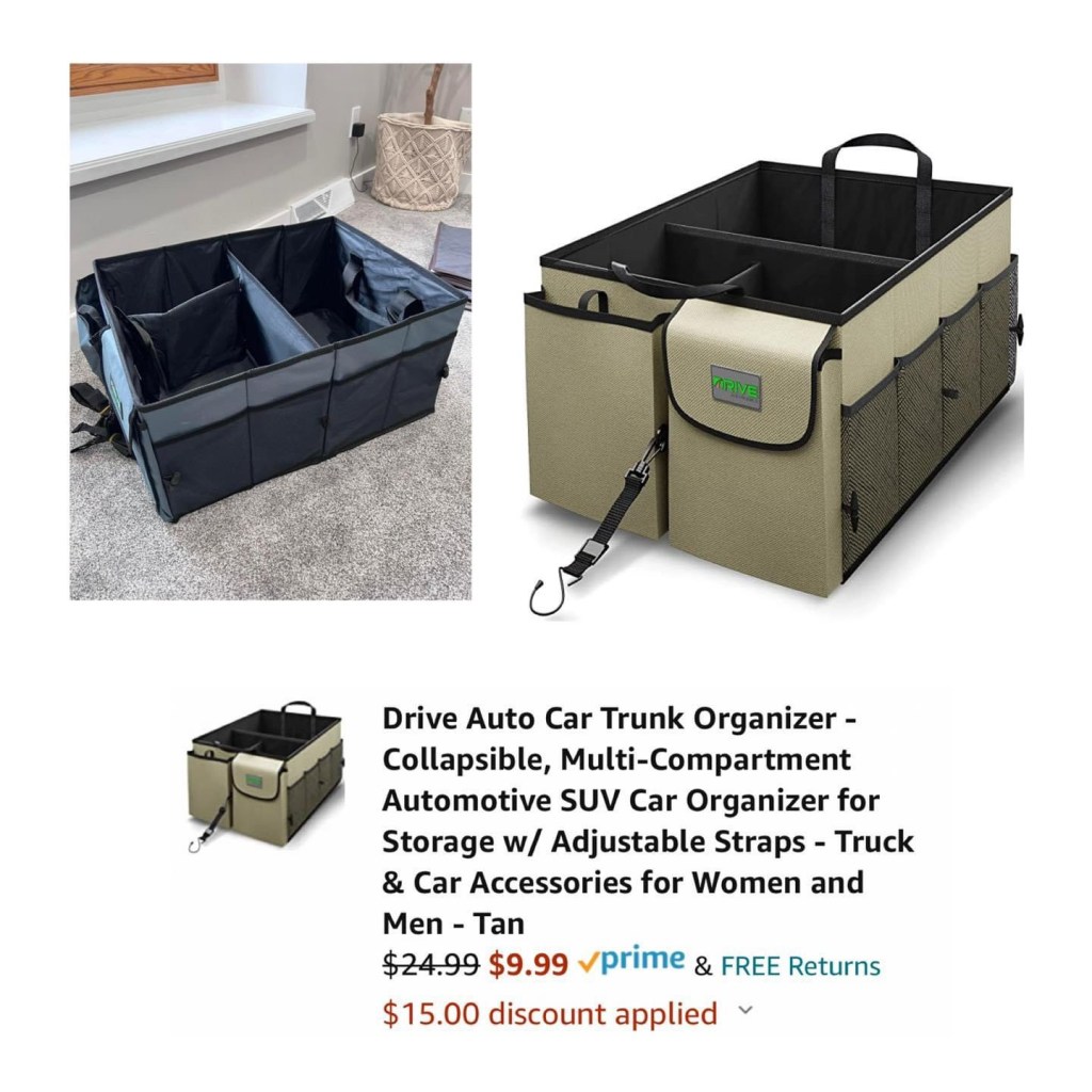 Lowest price ever!! ππΌββοΈπββοΈThis handy trunk organizer has amazing reviews and we can see why! Itβs sturdy, good quality and you know usβ we LOVE organization especially with sports and summer in full swing! Clip the 30% coupon PLUS save another 30% on gray and tan with code DRIVEA30FKD at checkout!!! π± Ad L!nk in comments