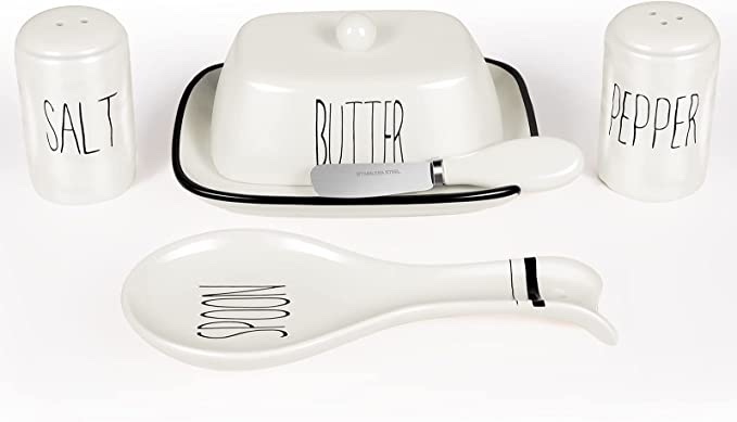 20% on this fun Butter Dish with Lid, Butter Knife, Spoon Rest, Salt and Pepper Shakers 5 in 1 Set! Tell us if you got it! #ad