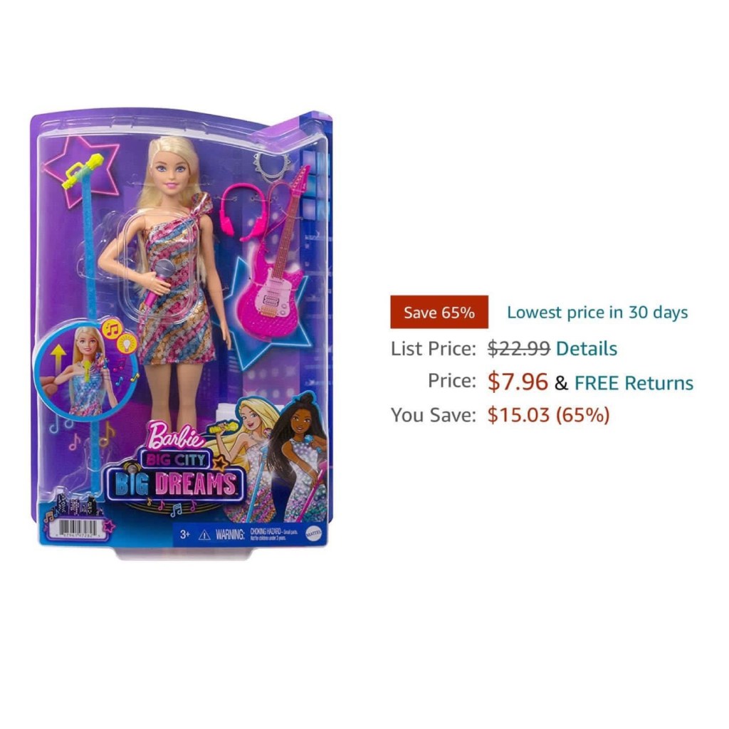 GO!!! 🔥🔥65% off — under 8! Barbie: Big City, Big Dreams Singing Barbie is on major sale, limit 3! Be sure to say if you get one. #ad link in comments