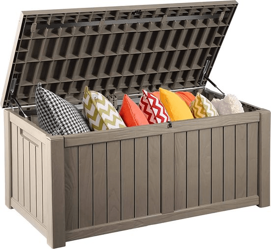 Woah!! This 120 Gallon Outdoor Lockable Resin Deck Box drops to just 129 when you use Rainign Deals link below! Tell us if you got it! #ad