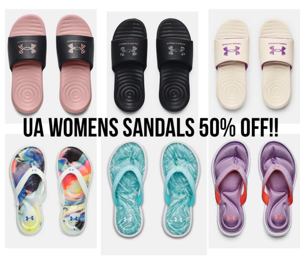 Yay!! 50% off Womens UA sandals!!! 🎁 The top slides drop to 12.50!!! Use SANDAL50 at checkout, log in for f r e e ship!! Did you get one? #ad l!nk in comments