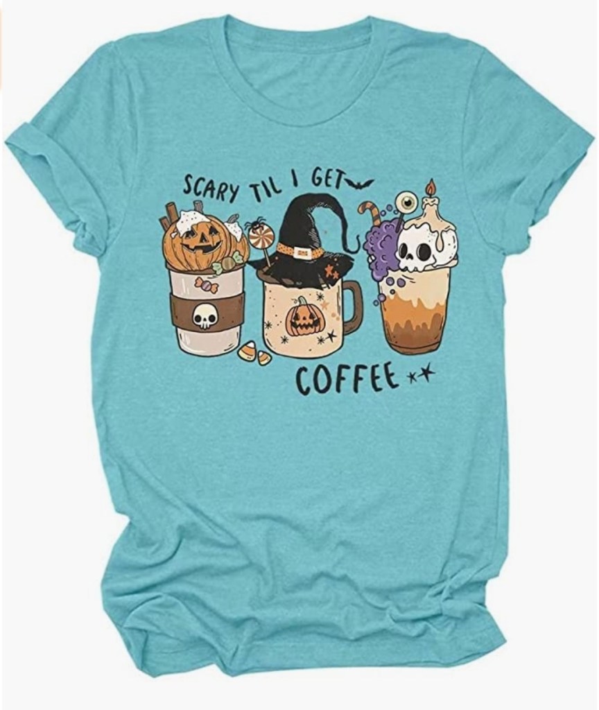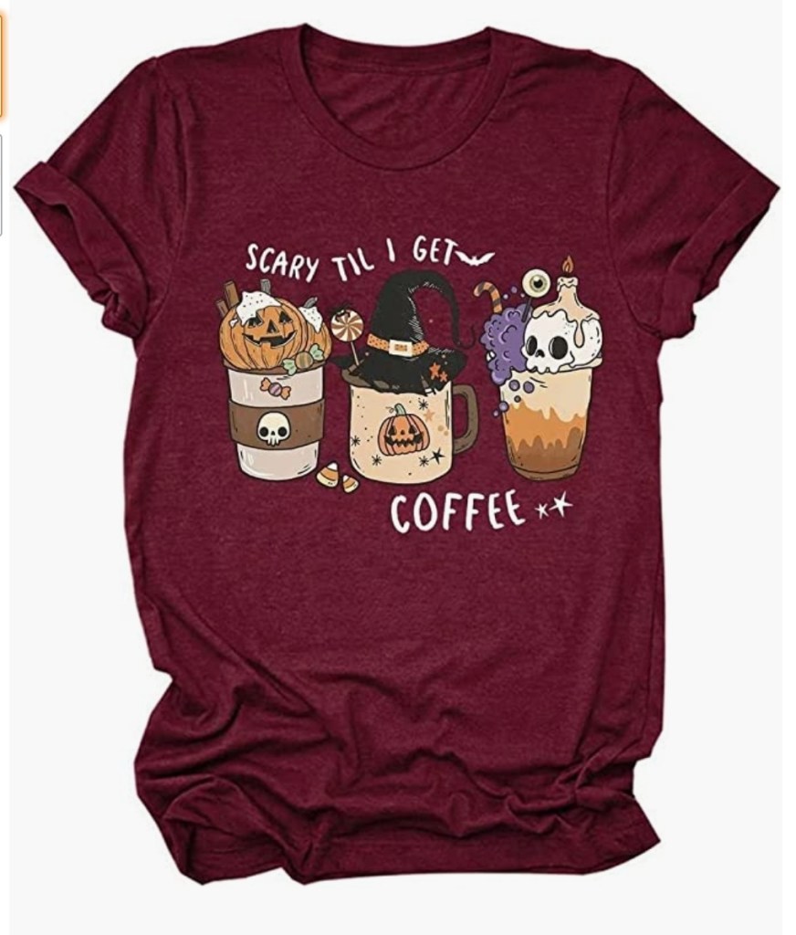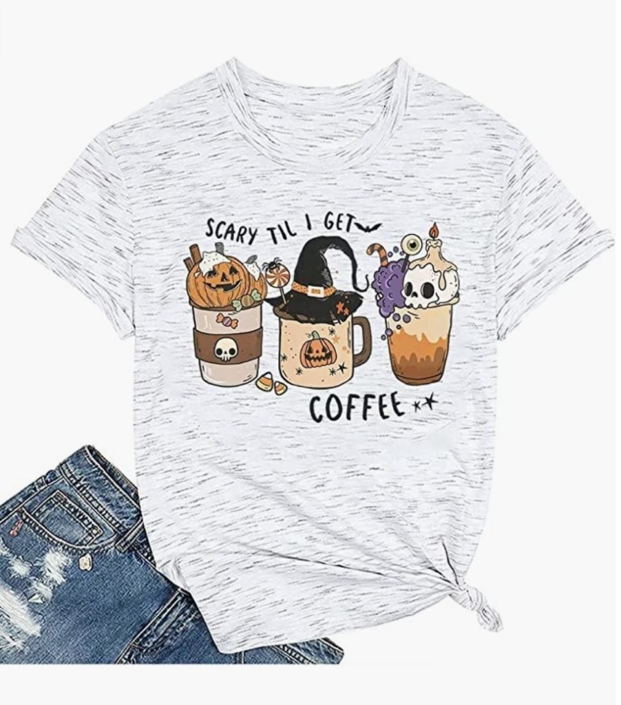 Super adorable ๐๐ Halloween theme – scarry till I get coffee.. T shirts are available in different colors and sizes. Save upto 50% with qode PLSYN6IF checkout. #ad l!nk in comments