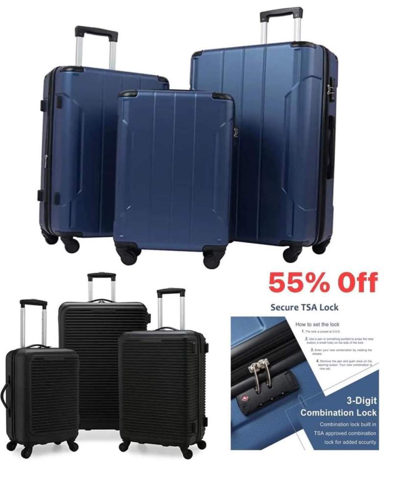 55 % O F F 🔥🔥Traveling soon… time for an upgrade on your luggage! Amazing, Hardshell Luggage Sets 3-Piece Spinner Suitcase with TSA Lock Lightweight – what a D EAL!!!! Let us know if you grab. L!nk in comments #ad