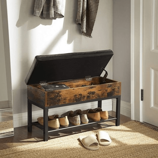 This cute Industrial, Rustic Brown and Black Padded Bench with Storage Box and Shoe Shelf drops by 27% making it to 69.99! Tell us if you got it! #ad