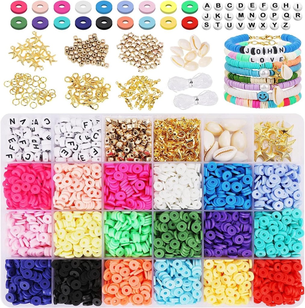 🔥 ONLY 9.99!! 💝 every girl would LOVE this!!! Great for teens/ adults too. Great Holiday/ basket/ Birthday/ rainy day gift too!! 4800Pcs Clay Beads for Bracelets Making Kit, 20 Colors Flat Polymer Clay Beads Kit with Smiley Face Letter Beads for Jewelry Making –