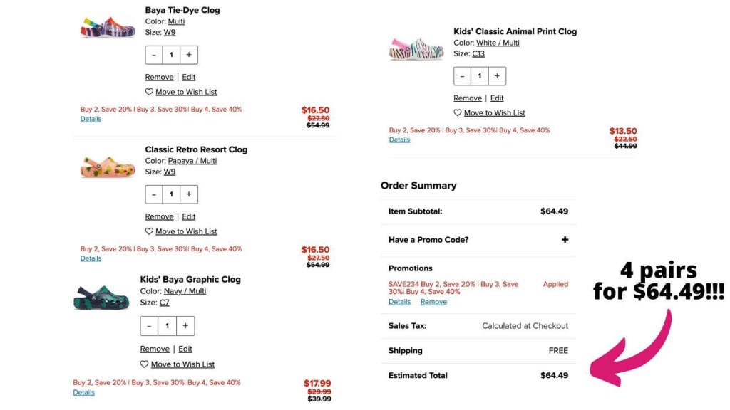 🔥🔥🔥🔥 YES!!! S ave on Crocs – add 4+ pairs to your cart and use SAVE234 at checkout! It should work for 40% off 4+ sitewide, but the savings on s@le items is extra amazing. Shipp!ng is fr33 with 50+. Please LMK if it works for you too! #ad l!nk in comments