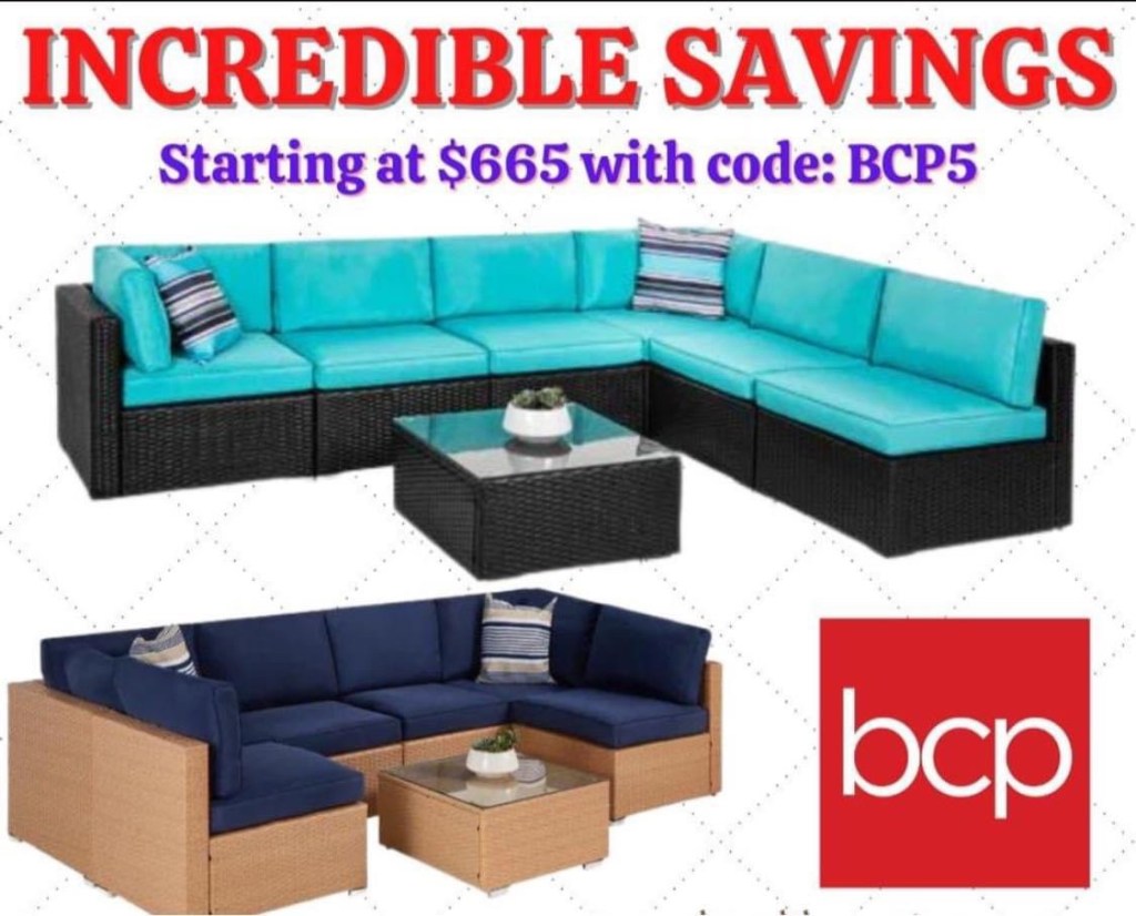 The perfect set for all your backyard entertaining!! Customize it to match your patio or deck and change it whenever you want! The set includes 4 single chairs, 2 corner chairs, 1 table with a tempered glass top, cushions, 2 accent pillows, protective cover, and seat fastener clips.💥 Starting at 665 with code: BCP5. Fast & Fr33Shipping on ALL orders! Be sure to say if you get one. #ad l!nk in comments