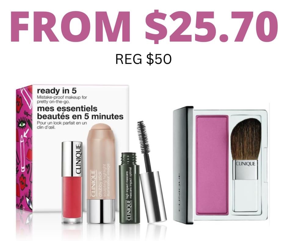 FROM 25.70 for this Clinique ready in five set!! I love this set for preteens just getting into makeup! It includes a mascara, blush, lip gloss & highlighter! New customers can use promo code HELLO10 for $10 off $20+ order or HSN2022 for $20 off $40+! Let me know if it works for you! Tell us if you got it! #ad