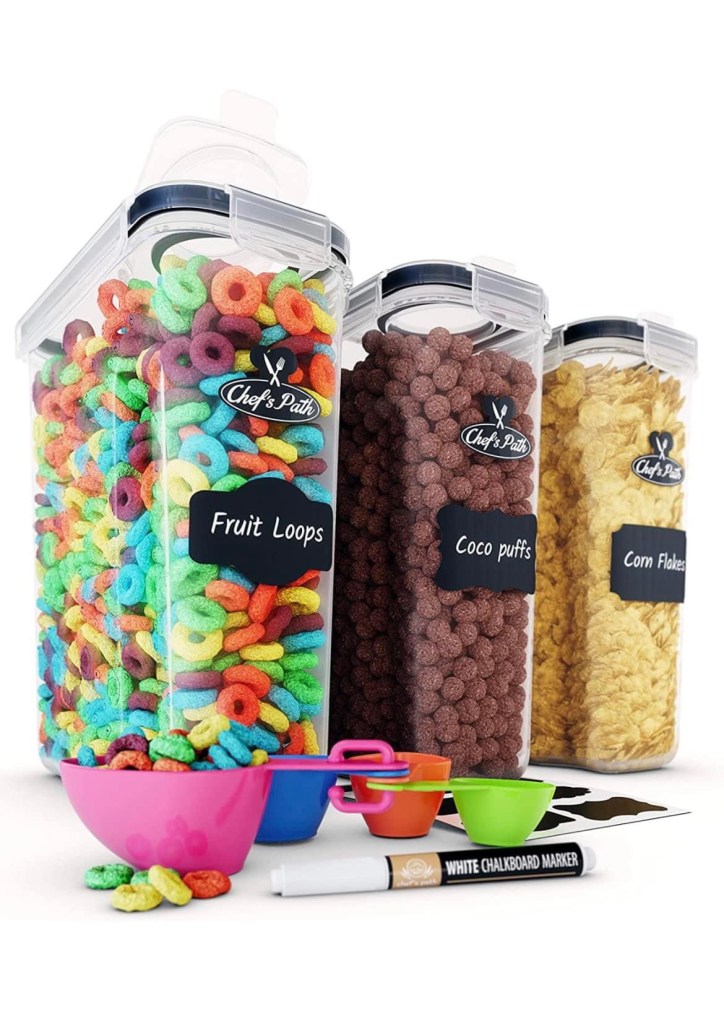 ad 💥 Save 36% on this 3 pc Cereal Container Set with labels and scoops. It holds so much and is air tight. No more open boxes of cereal getting stale! L!nk in comments