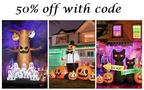 🎃 Score these inflatables for 50% off with code EJTMYYXV at checkout!! That 8 FT tree is 29% off + extra 50% off with code, only $32!! Tell us if you got any! #ad
