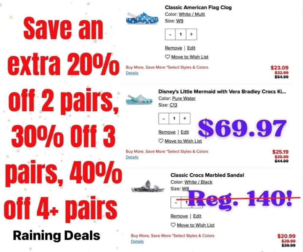 π₯π₯πββοΈ Today at Crocs! Save an extra 20% off 2 pairs, an extra 30% Off 3 pairs an extra 40% off 4+ pairs when you enter SAVEMORE at checkout! Be sure to say if you get. #ad l!nk in comments