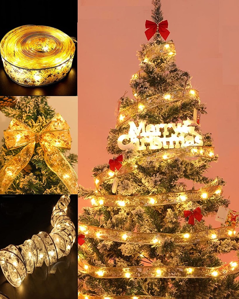 50% savings on the 32ft LED Gold Ribbon for your tree for little extra bling!! Includes 100 warm LED lights! Price drops at checkout with our link below! Tell us if got it! #ad