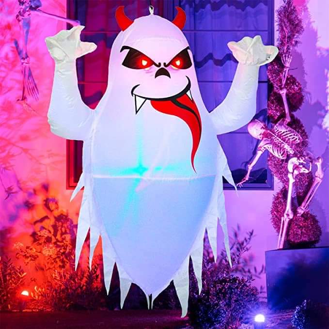 The coolest spooky hanging ghost! Halloween Inflatable Decorations Hanging Ghost Colorful LED Lights!! Let us know if you got #ad l!nk in comments💬