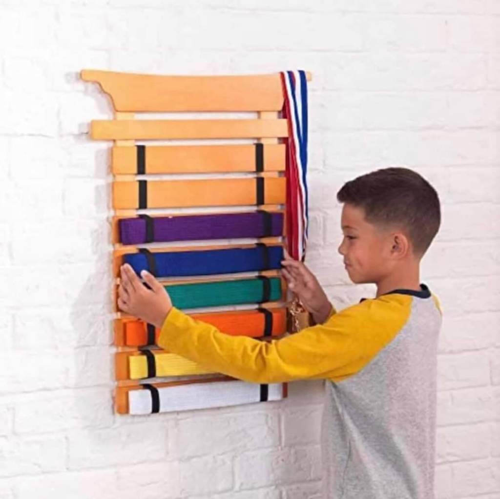 KIDKRAFT Martial Arts Wooden belt holder for 8 belts! What a great functional gift to display all the hard work!! π #ad l!nk in commentsπ¬ let us know if you grab