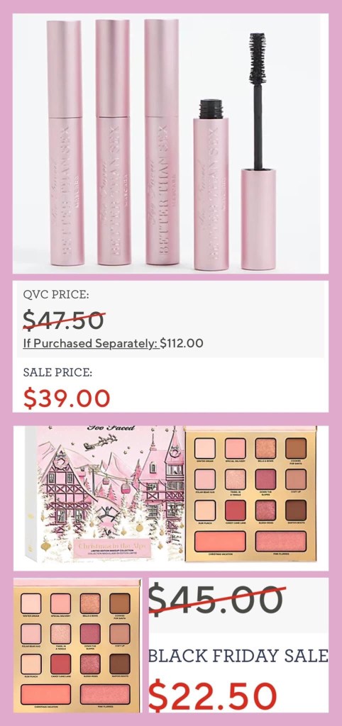 ad 😱There are some CRAZY BLACK FRIDAY PRICES over at QVC! Right NOW you can S@VE 95 when you purchase A 4 pack of the group favorite BETTER THAN SEX mascara Along with the Christmas in the Alps eye shadow pallet! IT ALSO SHIPS F R E E! holler if you snag. L!nk in comments