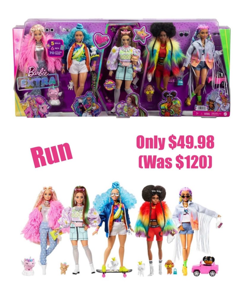 ⭐️⭐️ HOT HOT HOT!!!!! Top holiday toy is 49.98 (was 120) Barbie Extra 5-Doll Set with 6 Pets & 70 Styling Pieces – Can’t beat! Won’t last!! So many fun accessories with these cool Barbies!!! #ad be sure to say if you get one. L!nk in comments