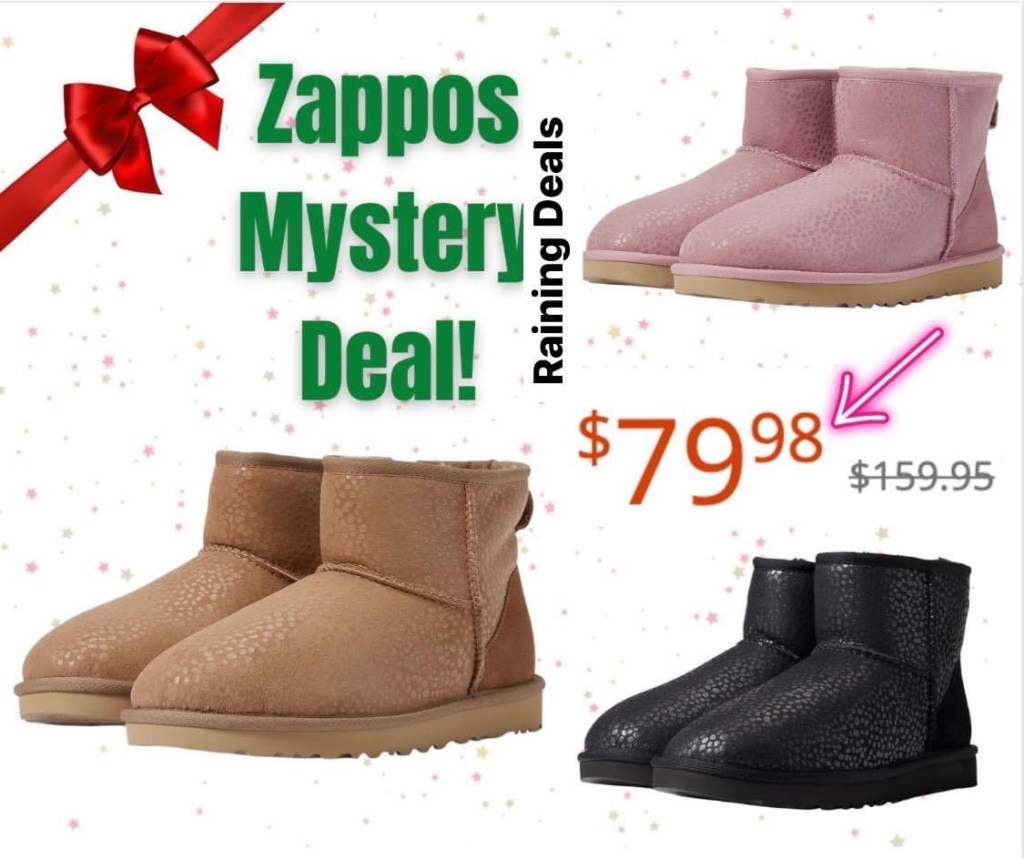 UGG fans! The Mystery Deal at Zappos is a good one! The Classic Mini Sparkle Spots boots are juts $79.95 with free shipping and returns. Regularly $160! Three colors while they last.