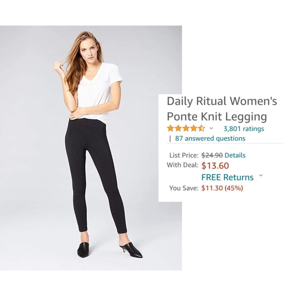 Daily Ritual Women’s Ponte Knit Leggings 45% off in select sizes — only 13.60! Be sure to say if you get one. #ad l!nk in comments