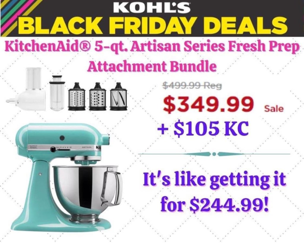 Kohl’s Black Friday 🌟 Hurry and grab the KitchenAid® 5-qt. Artisan Series Fresh Prep Attachment Bundle for 349.99 (reg. 500). Coup0ns don’t apply, BUT you get 105 Kohl’s Cash with your purchase. so it’s like getting it for only 244.99!! That’s CRAZY!! Holler if you snag. #ad l!nk in comments