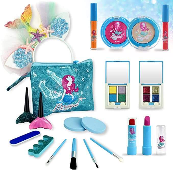 Use 60% clickable C0upon!!SOLLASY Kids Makeup Kit for Girl 20Pcs Washable Non Toxic Stage Makeup Show Toys Toddler Carrying Cosmetic Bag Mermaid Dress Up Real