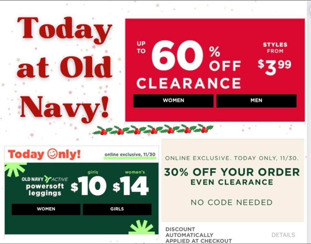š„š„š„ Today at Old Navy! Score š²10 / 14 power soft leggings for women and girls! PLUS check out the clearance items for men and women starting at just 3.99. AND, 30% off MOST items when you head to checkout. The d!scount will be applied automatically if your items qualify! be sure to say if you grab something. #ad l!nk in comments