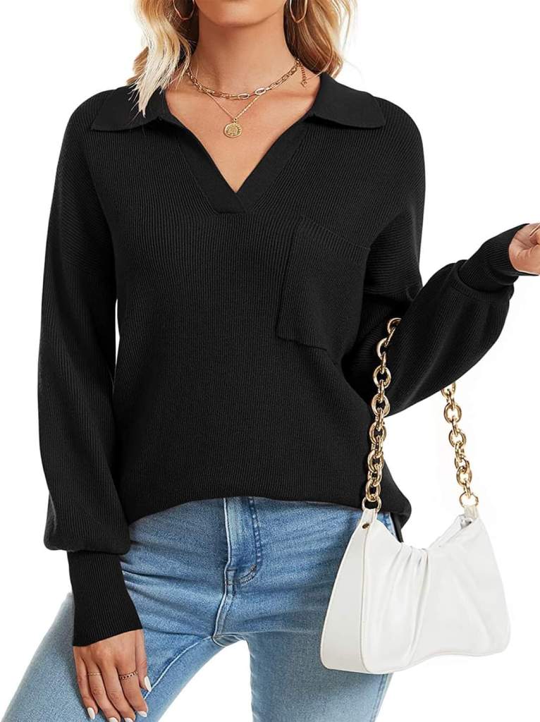 Lots of color Options! Micoson Womens Oversized V Neck Collared Sweater Drop Shoulder Side Slit Ribbed Knit Jumper Tops with Pocket!! #ad l!nk in comments will dr0p at checkout