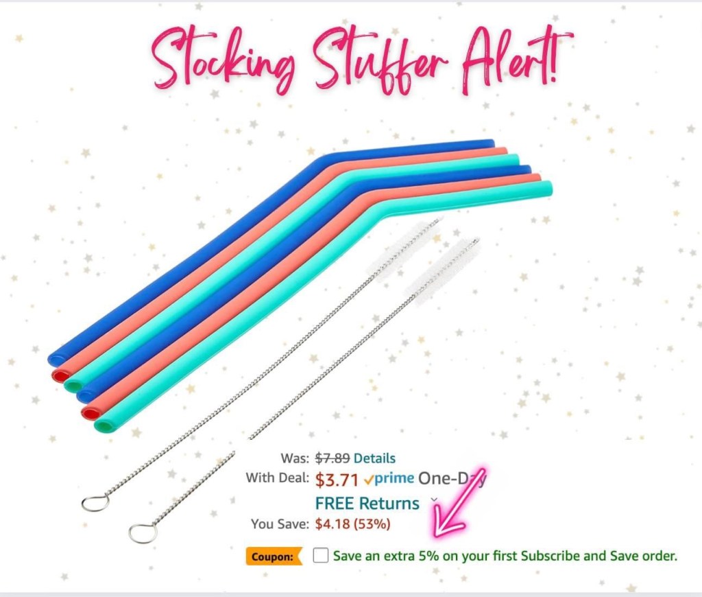 💥🔥 Stocking stuffer alert! The AmazonCommercial Silicone Straws and Cleaning Brushes have a huge savings! You get six straws and two cleaning brushes. #ad did you grab? 👇👇👇