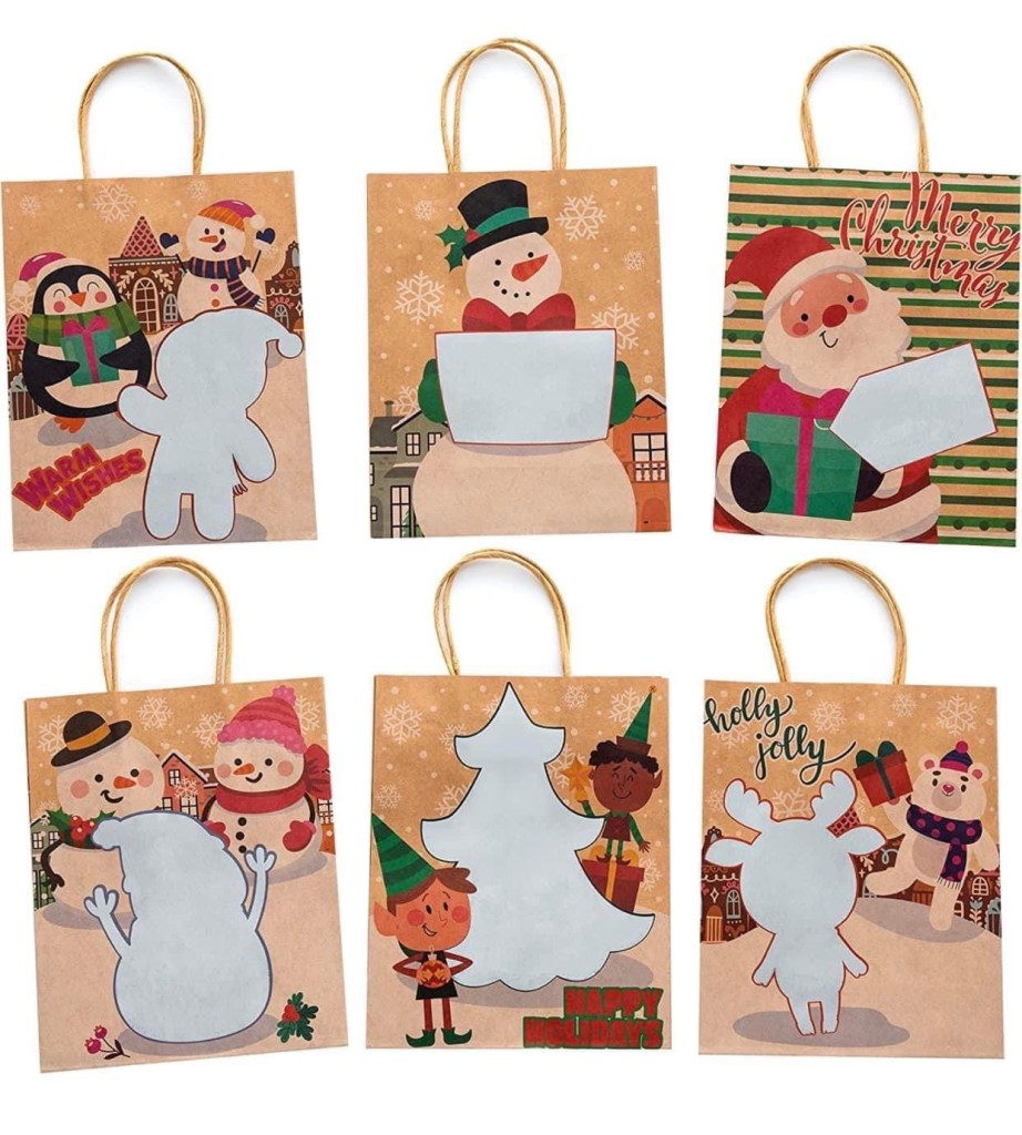 🎄🎅🏻🎁 This is such a fun way to get the kids involved with gift wrapping! These semi-DIY Kraft bags have a blank space for Littles (or growns!) to color, paint or decorate! You get a pack of 18 bags in 6 different designs. So cute! ▶️▶️ Enter UGR3YZ9C to save 40% at checkout! Did you get one? #ad 👇👇👇