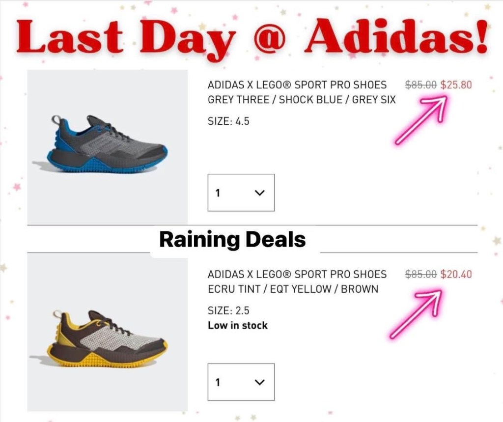 💥🔥🏃♀️ LAST DAY! The Adidas Friends and Family sale is going strong! Ends today! Use c0de DECEMBER and save up to 70% off after an extra 40% off s@le items. The X Lego Sports sneaker for kids is available in two colors. Regularly 80. Enter DECEMBER at checkout and sign in to your adi-Club account for free shipping! The price drops at checkout! Note that the colors have different prices. #ad be sure to say if you grab. 👇👇👇