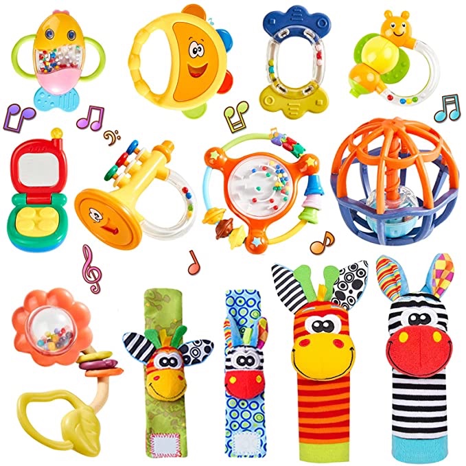 This 13 piece baby rattles and wrist socks rattles drops by 40% with Raining Deals link below! Tell us if you got it! #ad