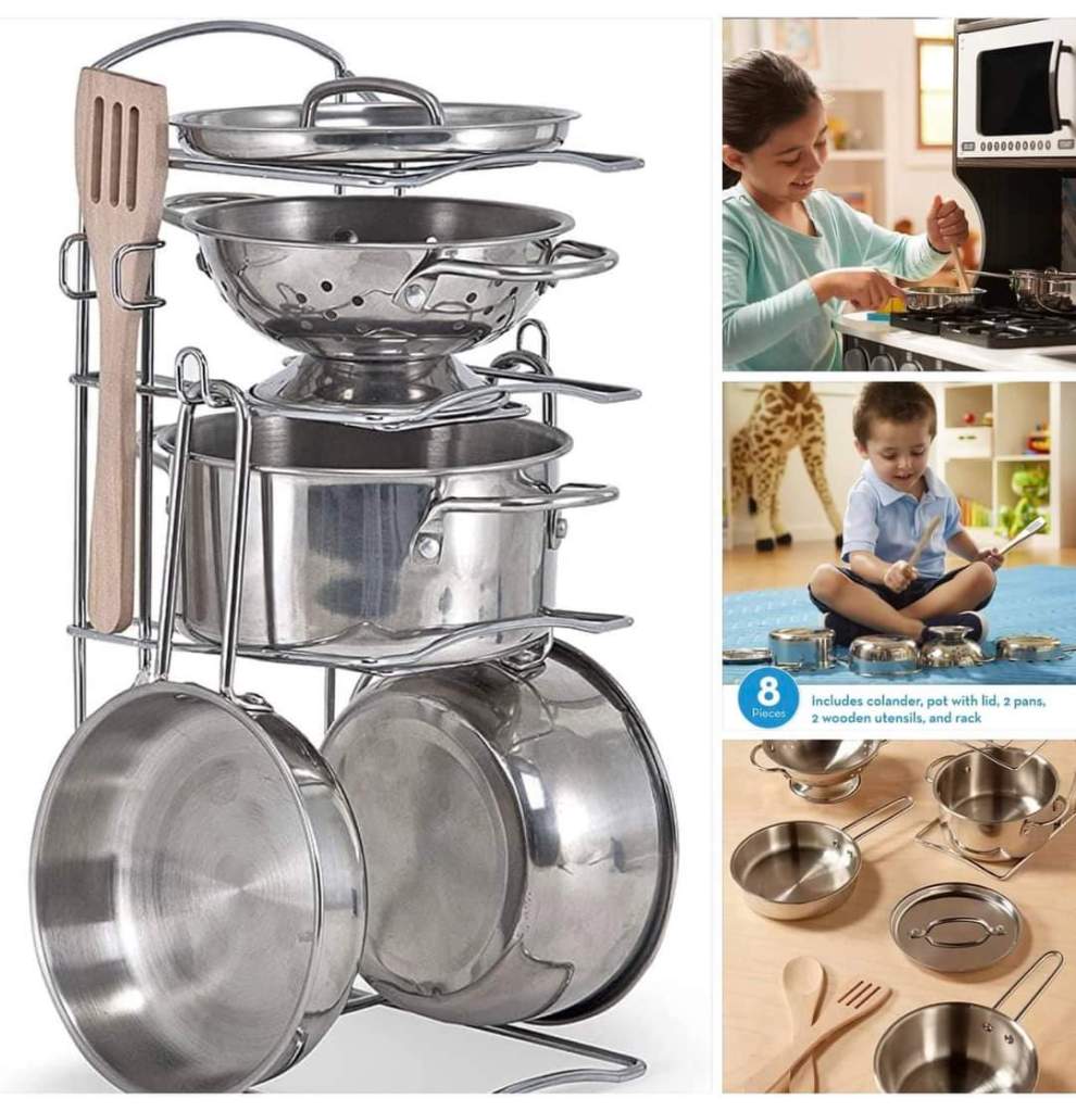 🔥🔥 42% 0ff!!! On MELISSA and DOUG Stainless Steel Pots and Pans Pretend Play Kitchen Set for Kids (8 pcs)!!!